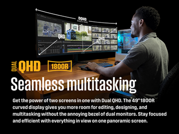 - Expansive Dual QHD Clarity: 49" 5120x1440 curved VA panel with a 32:9 aspect ratio delivers ultra-wide, crystal-clear visuals and vibrant color for gaming, multitasking, and professional workflows.