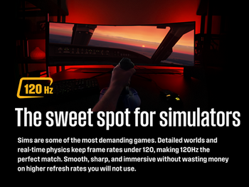 - Smooth, Immersive Performance: 120Hz refresh rate with AMD FreeSync ensures seamless, tear-free motion and responsive gameplay across racing, flight, and FPS titles.