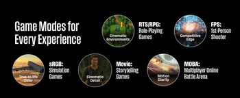 | View Modes | Standard, Movie, Eye Rest, FPS/RTS/RPG, MOBA, Reader |