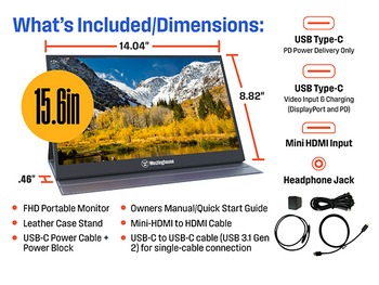 - CONNECTIVITY: Designed with mini-HDMI, USB Type-C, and headphone input. The USB-C port supports video output and power delivery, enabling single cable connection for laptops with USB-C Thunderbolt or DisplayPort Alt Mode support.