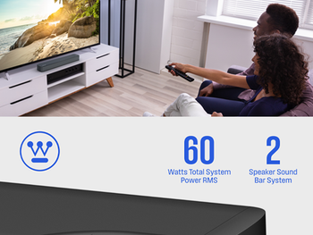 - 2.0 Compact 120 watt Soundbar: Offers superior audio quality, better dialogue clarity, and a more immersive listening experience compared to the down-firing speakers in a thin TV.