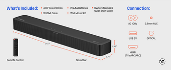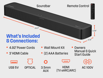 - Control Your Soundbar with Your TV Remote: Connect easily with HDMI to a TV with HDMI ARC and your sound bar will turn-on/turn-off with your TV remote.