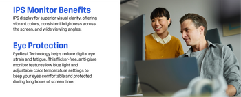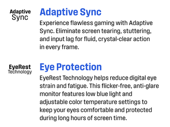 - Eye Comfort – Flicker-free, anti-glare, low blue light, and EyeRest technology reduce strain during long screen time.