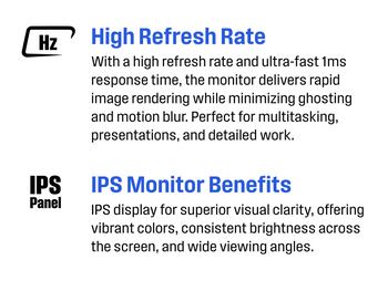 - Smooth & Responsive – 100Hz refresh rate and 1ms response time deliver fluid motion and reduced blur for work and gaming.