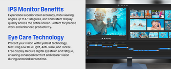 - EYE PROTECTION: The EyeRest Technology helps reduce digital eye strain and fatigue. This computer monitor is flicker-free, anti-glare, and is equipped with low blue light and color temperature settings, all designed to enhance your eye comfort and to protect your vision during prolonged screen time.