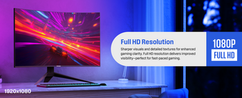Built-in speakers deliver rich and robust audio for gaming, movie watching, online content consumption, virtual calls, and meetings, allowing you to keep your work or personal gaming desk setup clean and clutter-free. Featuring multiple connectivity options with HDMI 2.1, DisplayPort 1.4, VGA, and a headphone input. HDMI cable is included.