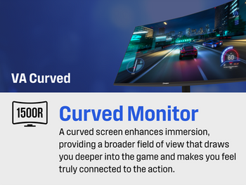 This monitor is built with a VA panel that delivers stunning high contrast visuals and deeper blacks for enhanced visual depth. Equipped with a high native refresh rate of 165Hz, this PC gaming monitor delivers seamless fast motion action and fluid onscreen visuals, making it an ideal choice for competitive multiplayer FPS games. The low 1ms response time works to minimize ghosting and motion blur for enhanced visual and motion clarity when playing fast paced games. Our curved monitor is powered by AMD FreeSync technology to help minimize stuttering, screen tearing, and input lag for smoother and more responsive gameplay.