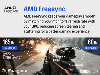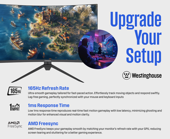 Enhance your gaming setup with the Westinghouse 24 Inch Full HD Curved Gaming Monitor w/ 165Hz Refresh Rate & AMD Freesync! Ideal for casual and competitive PC gaming, console gaming, streaming, and movie watching.
