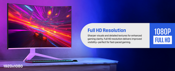 This monitor is built with a VA panel that delivers stunning high contrast visuals and deeper blacks for enhanced visual depth. The 1500R screen curve helps reduce glare, edge distortion, and creates a more uniform viewing distance, which further enhances gaming and movie-watching experience. Equipped with a high native refresh rate of 165Hz, this PC gaming monitor delivers seamless fast motion action and fluid onscreen visuals, making it an ideal choice for competitive multiplayer FPS games. The low 1ms response time works to minimize ghosting and motion blur for enhanced visual and motion clarity when playing fast paced games.