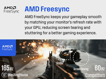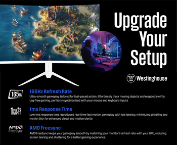 Enhance your gaming setup with the Westinghouse 32 Inch Full HD Curved Gaming Monitor w/ 165Hz Refresh Rate & AMD Freesync! Ideal for casual and competitive PC gaming, console gaming, streaming, and movie watching.