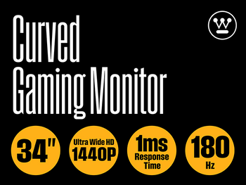 Enhance your gaming setup with the Westinghouse 34 Inch 1440p Ultrawide Curved Gaming Monitor w/ 180Hz Refresh Rate & AMD FreeSync! It is ideal for casual and competitive PC gaming, console gaming, streaming, and movie watching.