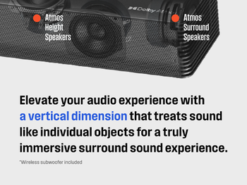 - Dolby Atmos Up-Firing Height Speakers and Side-Surround Speakers - The adaptive Height Speakers integrated into the soundbar automatically rotate up or forward to create a more immersive and three-dimensional sound experience. Dolby Atmos treats sound as individual objects that can be placed and moved anywhere in your room making it feel as if sounds are coming from above, behind and all around you.